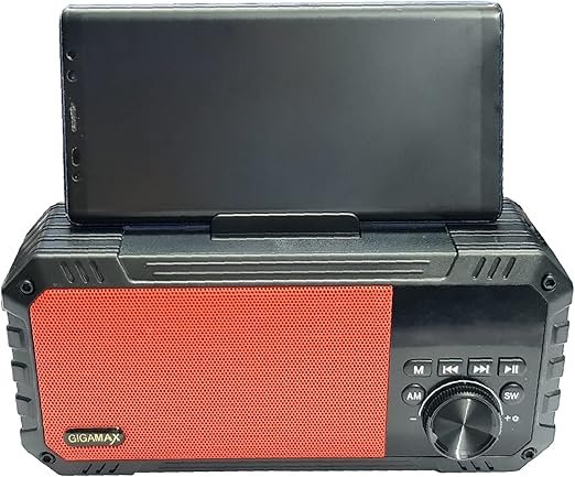 مكبر صوت بلوتوث محمول من جيجاماكس GM320 بتصميم حامل للموبايل، منفذ USB، مقبس مدخل AUX 3.5 ملم، بطاقة ذاكرة Micro SD – اسود احمر – speaker gigamax GM-320 BT-FM-SD