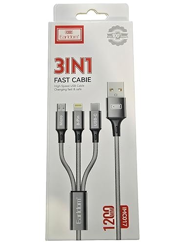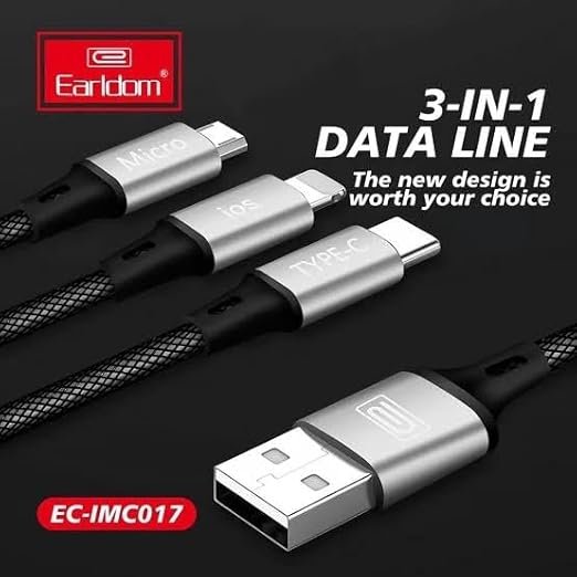 كابل الشحن المتعدد EARLDOM IMC017 بتصميم 3 في 1 يوفّر لك جميع التوصيلات التي تحتاجها في كابل واحد، يدعم الشحن السريع ونقل البيانات، بجودة تصنيع عالية، ومناسب لمعظم أجهزة الهواتف الذكية والأجهزة اللوحية.