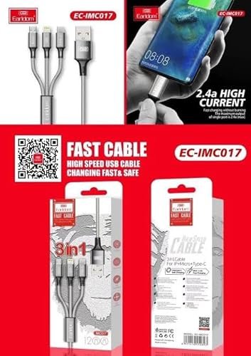 كابل EARLDOM IMC017 متعدد الاستخدامات – شحن سريع ونقل بيانات – 3 في 1 بمنفذ Lightning / Type-C / Micro USB