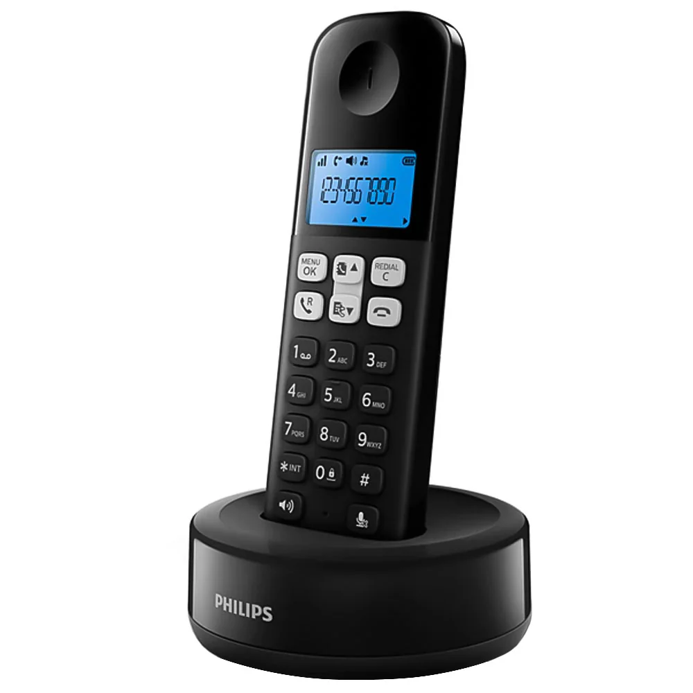 هاتف منزلي لاسلكي من فيليبس بتصميم بسيط وأداء فعّال، شاشة 1.6 إنش مع إضاءة خلفية زرقاء، مكبر صوت للمحادثة بدون استخدام اليدين، وموفر للطاقة مع عمر بطارية يصل إلى 10 ساعات مكالمة و200 ساعة وضع استعداد.